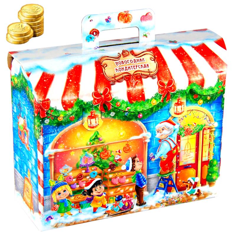 Детский новогодний подарок в картонной упаковке весом 1000 грамм